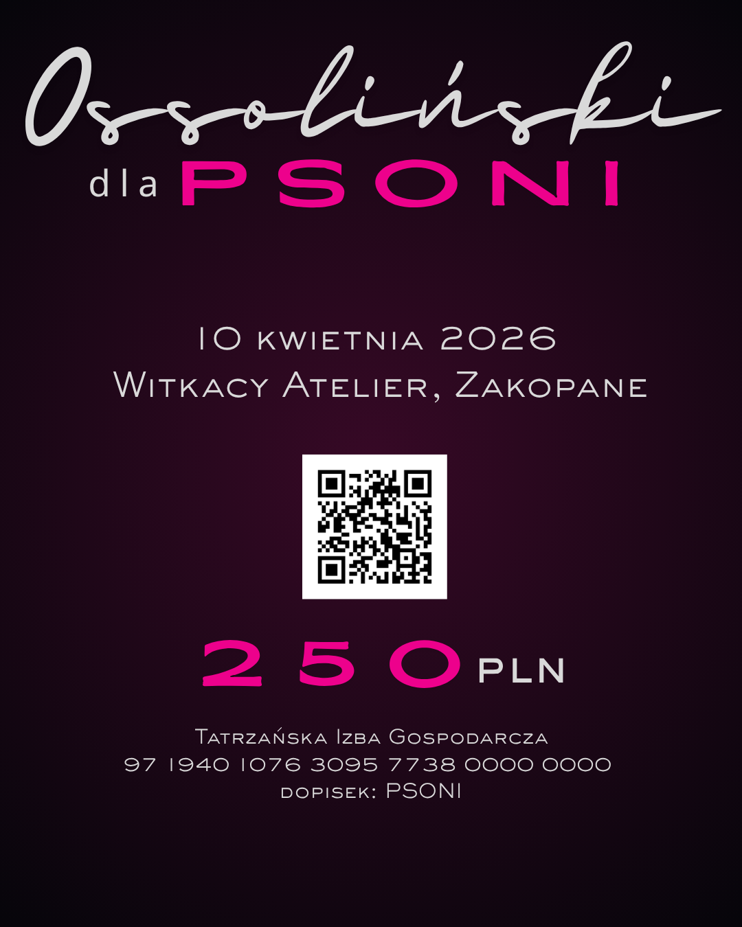 Wydarzenie ma charakter charytatywny - wspólnie wspieramy budowę domu dla osób z niepełnosprawnościami, realizowaną przez PSONI Zakopane.